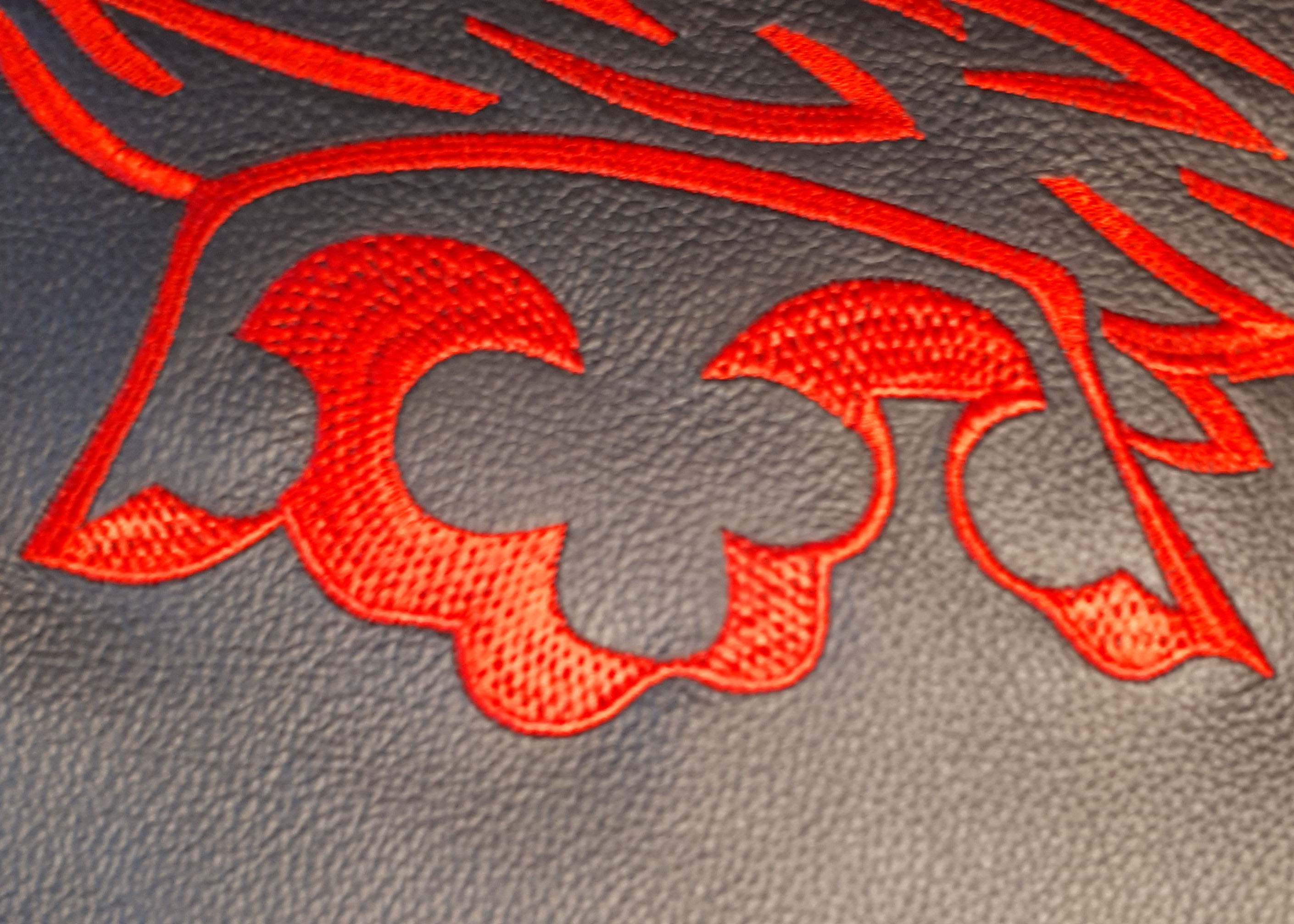 Edles Design für Ihr Auto, Ledertasche, Schabracke - auch besondere / anspruchsvolle Materialien können bestickt werden.